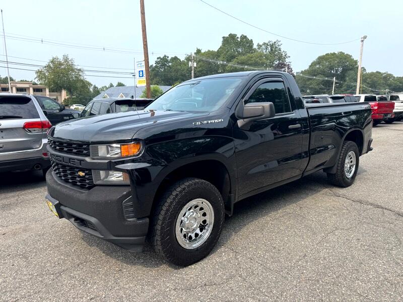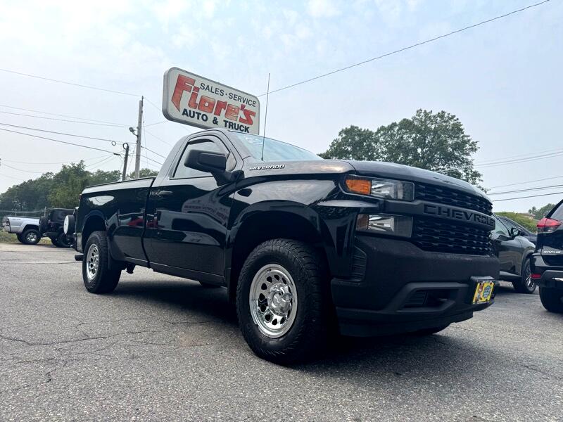 2020 Chevy Silverado 1500 4X4 Regular Cab Long Bed Pickup Truck with 5.3 Liter V8 in excellent 1 owner condition. Call us today at 508-842-3500 with any questions, or visit www.fioresinc.com 24 hours a day for more pictures and details. Just traded in on new truck, includes clean one owner Carfax history report with dealer services and maintenance. Gorgeous Jet Black exterior with Charcoal cloth interior, truck still shines like a new truck ! Rock solid body and chassis, no rust anywhere. Hard to find truck in any condition, especially this nice. Proven and reliable 5.3 Liter Vortec V8 engine and automatic transmission with overdrive provide plenty of power and performance. Shift on the fly electronic 4 wheel drive operates effortlessly. Perfect truck for work or play, easily haul your large trailer or boat with ease. Nicely equipped with air conditioning, stereo with touch screen and hands free blue tooth, back up camera, high back bucket seats with fold down center console, electronic parking brake, traction control. Factory chrome wheels with 4 recent All Terrrain tires, bed liner, factory tow package, roll up bed cover, window vents, LED headlights, tinted glass. Truck runs and drives perfect ! Through our own shop, safety checked and serviced, and includes warranty. Turn key ready to go anywhere, through any New England weather. You don't see many 4x4 regular cab 1500 pickup's with the 5.3 V8, don't wait too long this truck won't last. Priced below book value, and zero down financing available with your good credit. Call us today at 508-842-3500, stop in today for a test drive, or visit www.fioresinc.com any time of day for more details and finance options.