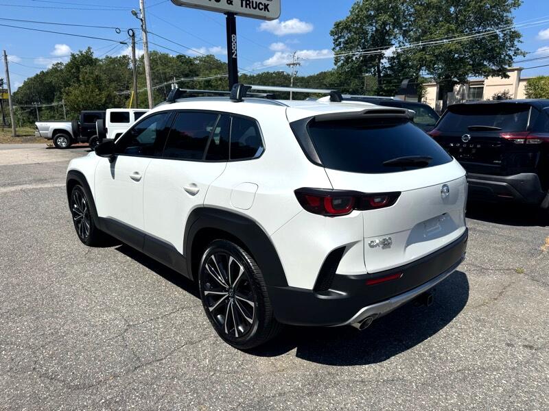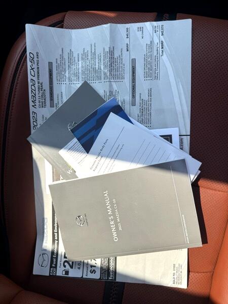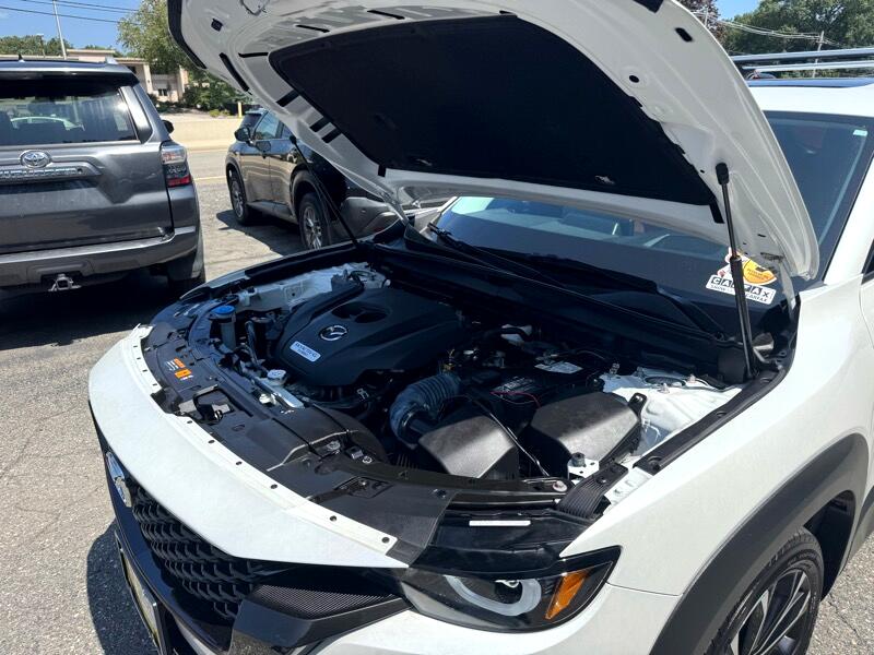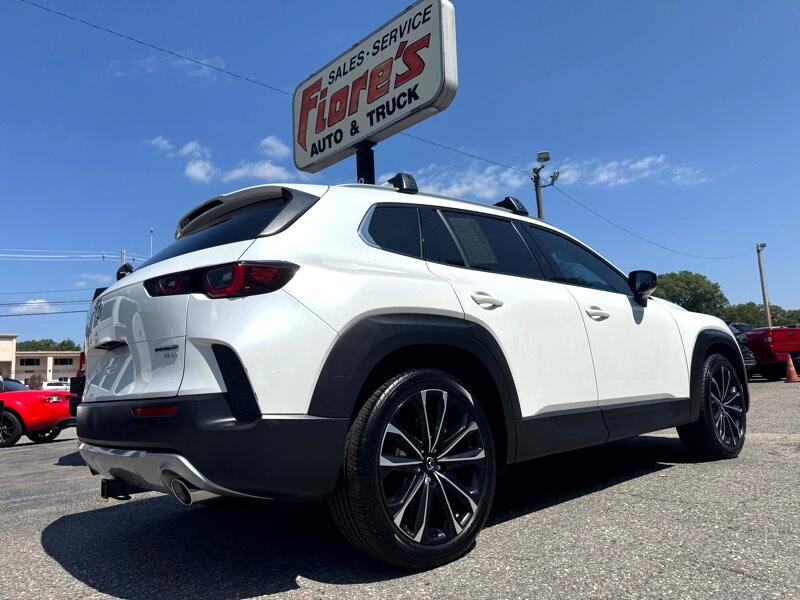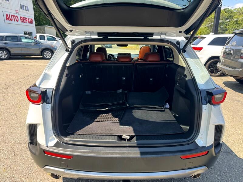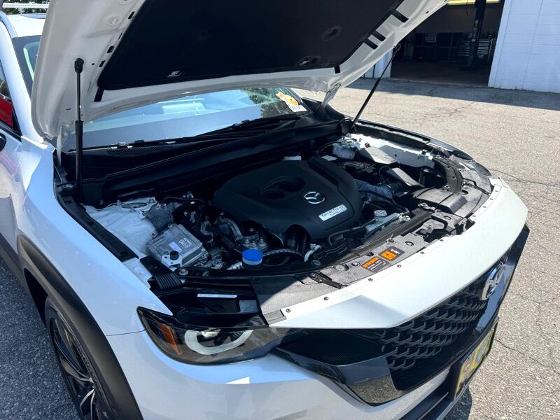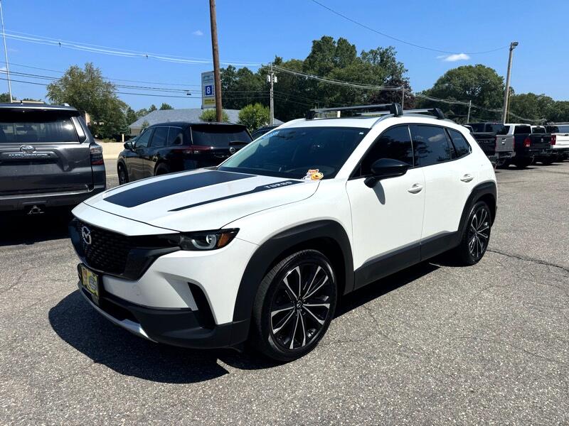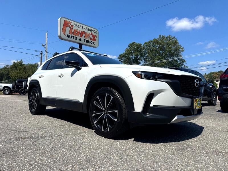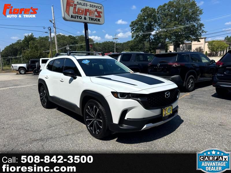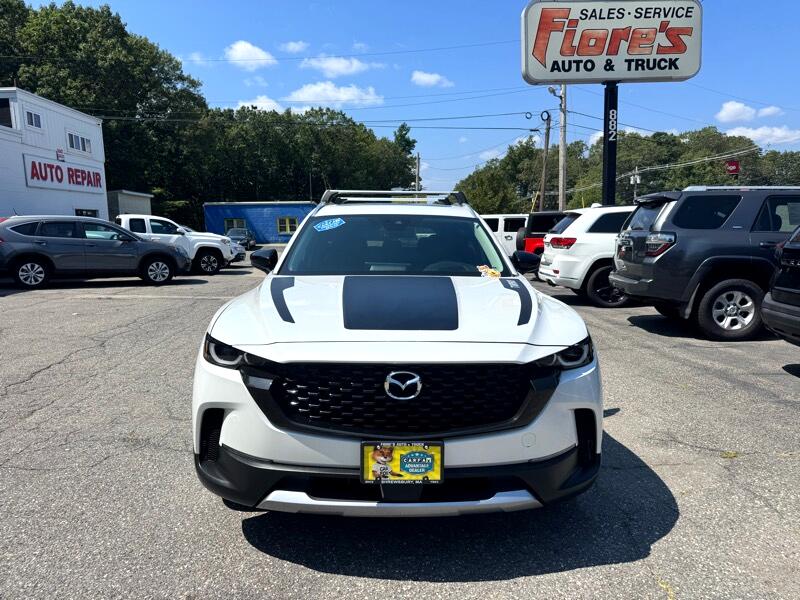 2023 Mazda CX-50 All Wheel Drive Premium Package with low miles and every options in perfect condition. Call us today at 508-842-3500 with any questions, or visit www.fioresinc.com 24 hours a day for more pictures and details. Just traded in on new vehicle, includes clean Carfax history report with dealer services and maintenance. Carfax certified oil change schedule since new. Still under factory warranty coverage, serviceable at any Mazda dealer nationwide. Top of the line SUV, seating for 5 people, and tons of room for your cargo and gear. Gorgeous Wind Chill Pearl White exterior with Terracotta Brown leather seating - one of the sharpest color combinations available. Proven and reliable 2.0 Liter 4 cylinder puts out 227 horsepower, automatic transmission with overdrive, and an all wheel drive system so smooth that you can not even tell is there. Plenty of power and performance with unbeatable fuel efficiency. Every option available including panoramic moonroof, huge touch screen stereo with hands free blue tooth, blind spot and cross traffic alert system, back up camera and sensors, heated and cooled front bucket seats with full size center console, Bose 12 speaker sound system, auto folding heated side mirrors, paddle shifters, dual automatic climate controls with separate rear controls, power lift gate, remote entry and start. Factory premium wheels with 4 like new Good Year All Season tires, roof rack, factory trailer tow package, front spoiler, driving lights, body side moldings, deep tinted glass all around. Still runs, drives and looks like a new car ! Through our own shop, safety checked and serviced, and includes warranty. Turn key ready to go anywhere, through any New England weather. Save big off the cost of new, MSRP was over $42K when new. Hard to find this nice, with this equipment, in perfect all original condition. Must see and drive to appreciate in person. Price well below book value, and zero down financing available with your good credit. Call us today at 508-842-3500, stop in for a test drive, or visit www.fioresinc.com any time of day for more details and finance options.