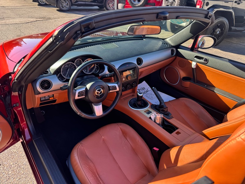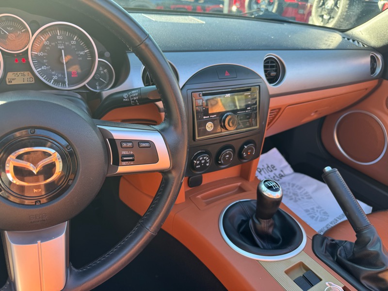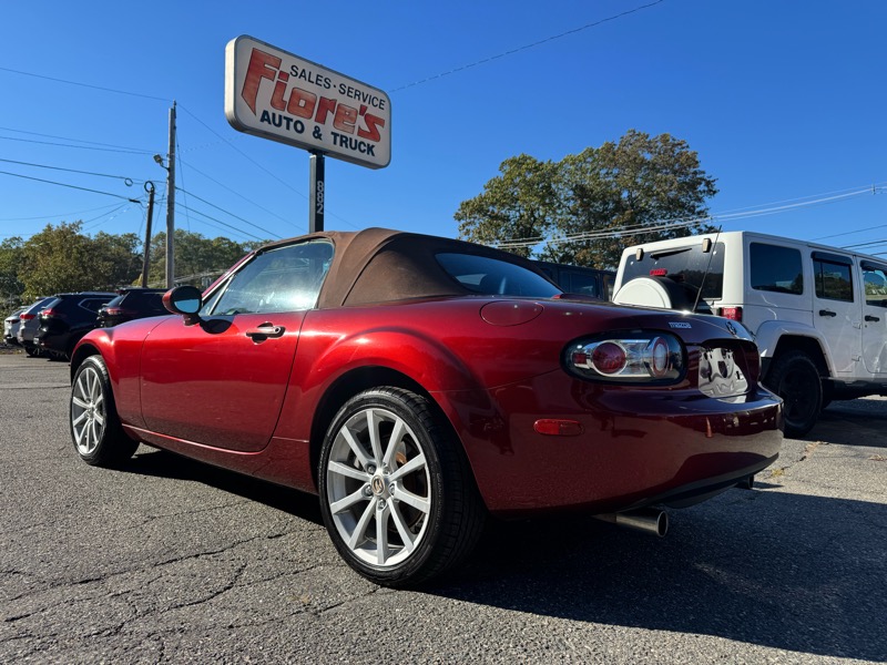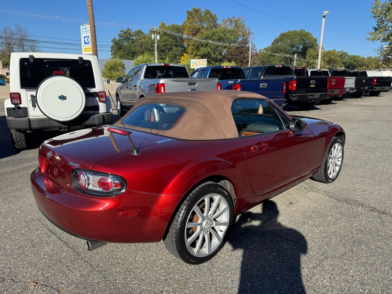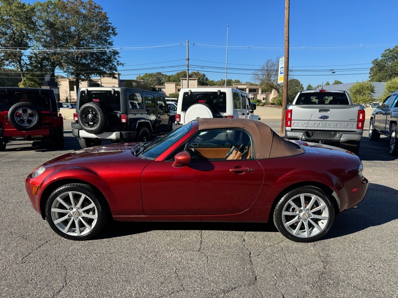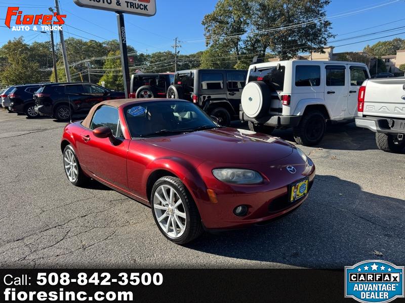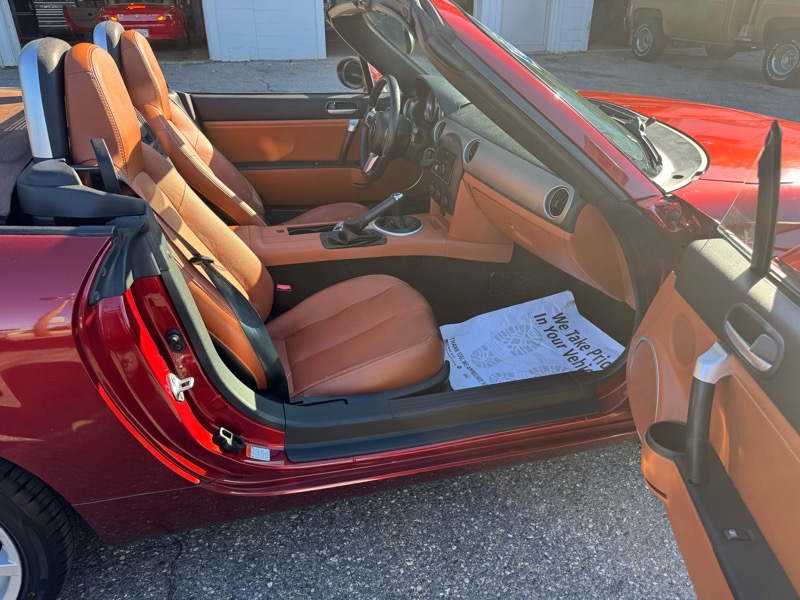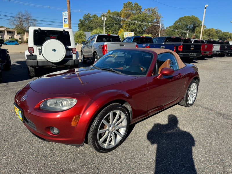 2006 Mazda Miata MX-5 Grand Touring with 6 speed Manual and low miles just shipped up from sunny Georgia ! Call us today at 508-842-3500 with any questions, or visit www.fioresinc.com 24 hours a day for more pictures and details. Just traded in on new car, and includes clean Carfax history report with dealer services and maintenance. Gorgeous Copper Red Mica exterior and Tan Leather interior, car still shines like a new car. Very clean and solid body and chassis, can not beat a Southern car ! Proven and reliable 2.0 Liter 4 cylinder and 6 speed manual transmission provide plenty of power and performance with exceptional fuel efficiency. Handles and performs like a Corvette without the price tag. Fully equipped with air conditioning, power windows, power locks, cruise control, upgraded stereo with touch screen and blue tooth technology, steering wheel controls, traction control, power trunk release, remote entry, keyless ignition, power mirrors. Factory alloy wheels with 4 recent all season tires, dual exhaust, running lights, tinted glass. Car runs and drives perfect ! Through our own shop, safety checked and serviced, and includes warranty. Turn key ready to go anywhere, very reliable and easy to maneuver. Very sharp looking car that needs nothing, ready for shows, commutes, or weekends away. Priced below market value, and zero down financing available with your good credit. Call us today at 508-842-3500, stop in for a test drive, or visit www.fioresinc.com any time of day for more details and finance options.