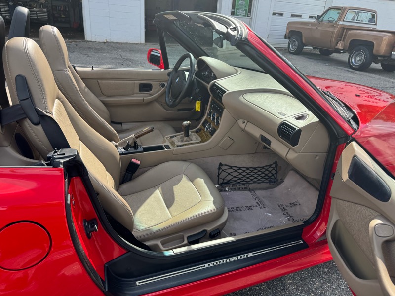 2000 BMW Z3 Roadster in mint 1 owner condition with 5 speed manual transmission. Call us today at 508-842-3500 with any questions, or visit www.fioresinc.com 24 hours a day for more pictures and details. Just traded in on new car, includes clean Carfax history report with dealer services and maintenance. Gorgeous Bright Red exterior with Tan Leather interior, amazing original condition inside and out. Includes all factory paperwork including the original window sticker ! Proven and reliable 2.5 Liter inline 6 cylinder engine and 5 speed manual transmission provide plenty of power and performance with respectable fuel efficiency. Very fun car to drive, handles like a Corvette, and won't break the bank ! Fully equipped with air conditioning, power window, power locks, cruise control, factory stereo system, power mirrors, high back bucket seats, factory roll over protection. Factory alloy rims with 4 like new Michelin All Season tires. Through our own shop, safety checked and serviced, and includes warranty. Turn key ready to go anywhere, this car needs nothing. Hard to find another this clean in this price range. Perfect running condition ready for weekends away, leaf peeping cruises, or car shows. Must see and drive to appreciate. Priced below market value, and way below the Spring time value - now is the time to save ! Call us at 508-842-3500, stop in for a test drive, or visit www.fioresinc.com any time of day for more details.
